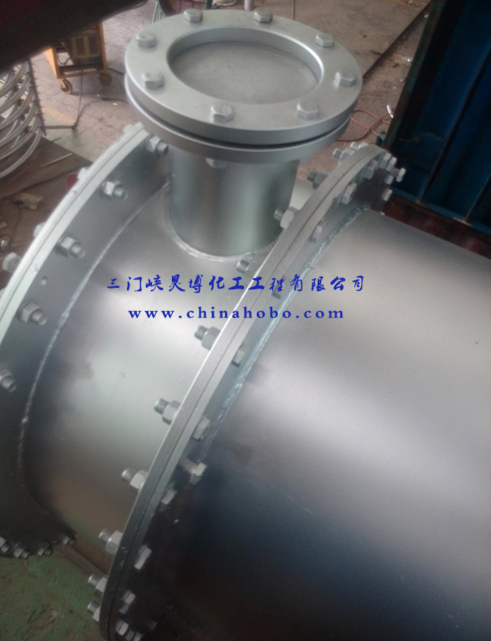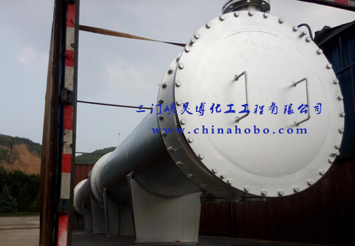 操作人員在換熱器設(shè)備上打上三門(mén)峽昊博化工工程有限公司標(biāo)示和電話0398-2918156